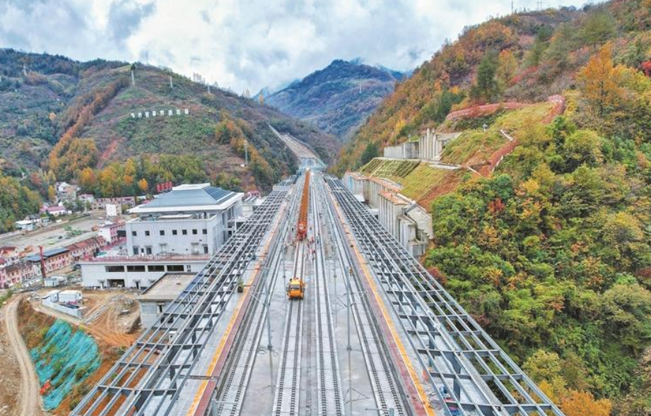日前,隨著最后一對500米長鋼軌平穩(wěn)鋪設到位,西康高鐵軌道成功延伸至鎮(zhèn)安西站,標志著項目鋪軌工程取得階段性突破。作為國家“八縱八橫”高鐵網(wǎng)的重要組成部分,西康高鐵穿越秦巴山區(qū),橋隧比高達94.4%,鋪軌設計總量361.11公里(正線鋪軌341.49km、站線鋪軌19.62km)。