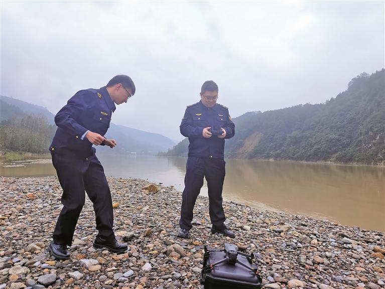 商洛市生態環境局商南縣分局執法隊工作人員利用無人機開展巡查(資料照片)。 受訪單位供圖